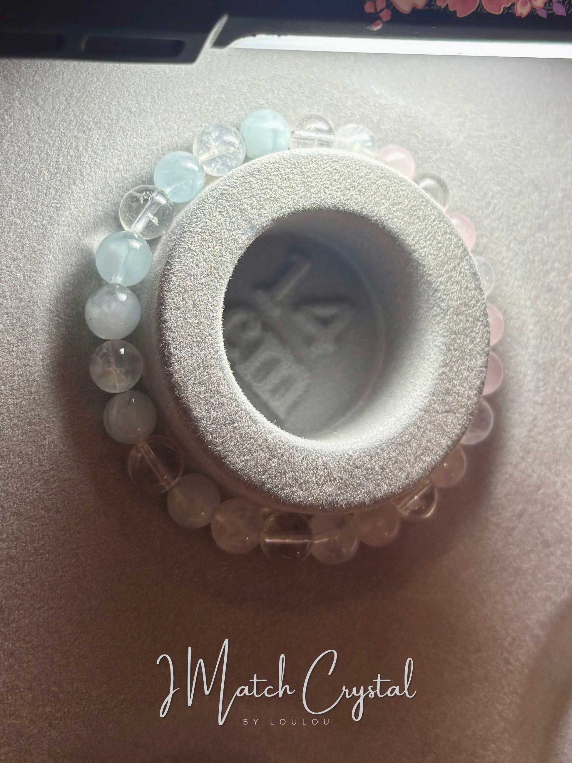 材質:6mm天然水晶(粉晶/藍月亮石/白水晶/海藍寶)