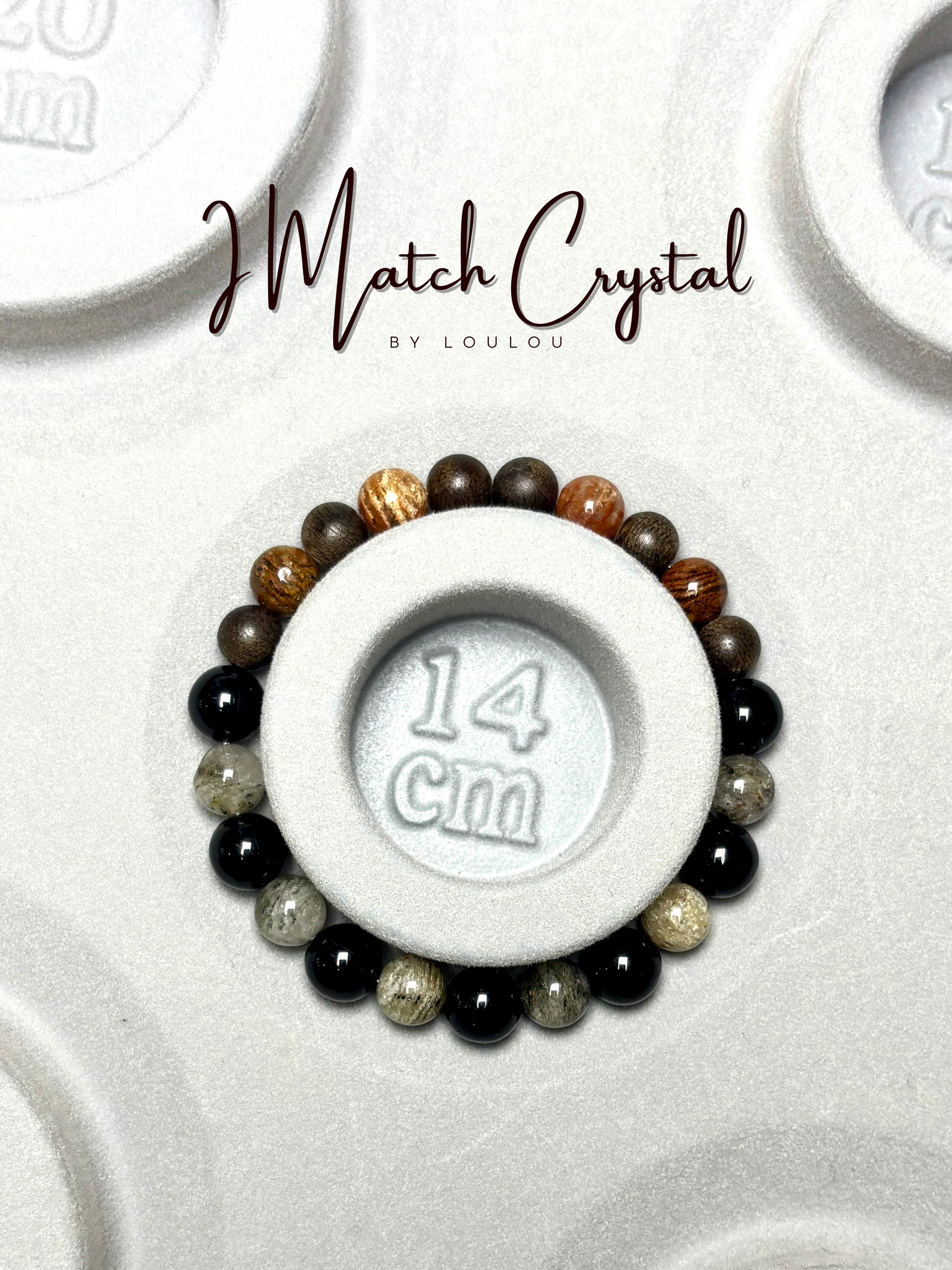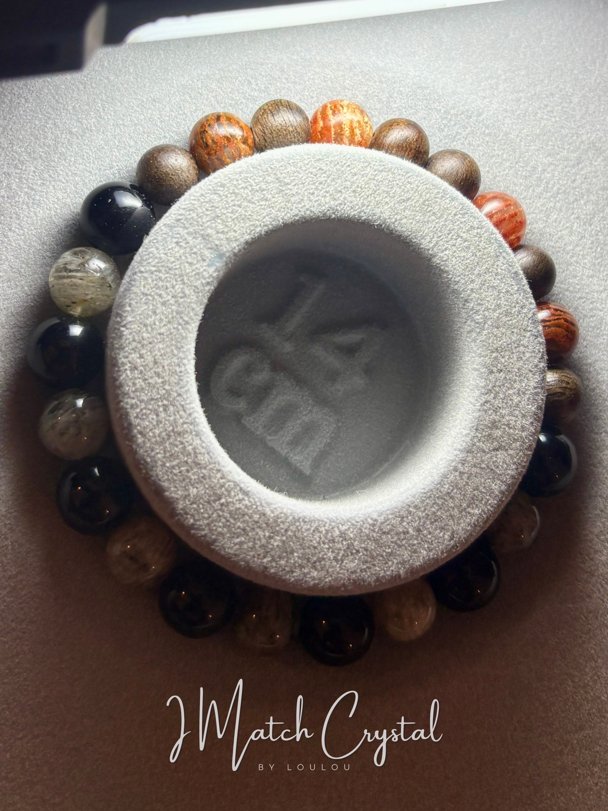 專為農曆七月設計的兒童能量防護手串,嚴選7mm天然水晶圓珠,結合「辟邪、淨化、結界、安神」四大功能,由黑曜石、白幽靈、紅幽靈、沉香木組成。